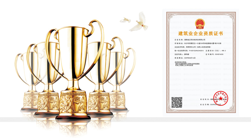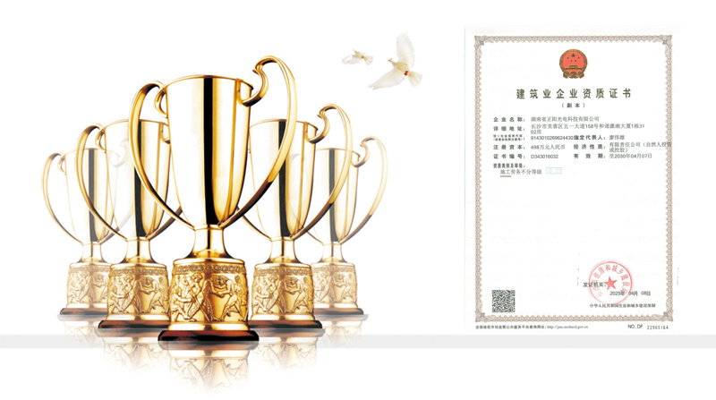 湖南省正陽光電科技有限公司是一家從事亮化工程及大型燈光藝術(shù)的設(shè)計、制作、安裝和維護于一體的專業(yè)化公司。公司資質(zhì)齊全、管理嚴謹、技術(shù)先進、實力雄厚,取得了城市及道路照明工程專業(yè)承包壹級資質(zhì)、照明工程設(shè)計專項甲級資質(zhì)、機電工程施工總承包貳級資質(zhì)、施工勞務等資質(zhì)、國家高新技術(shù)企業(yè)、國家“重質(zhì)量·守誠信”示范企業(yè)。